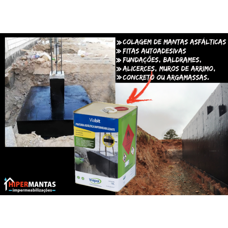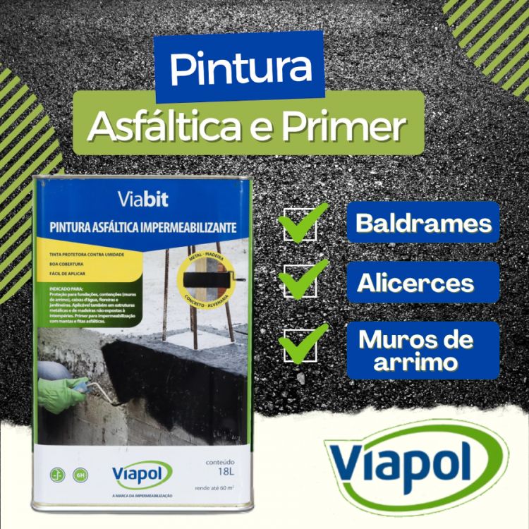 Viabit é uma pintura asfáltica impermeável composta de asfalto oxidado e solventes orgânicos com alta aderência em diversos substratos para aplicação a frio.